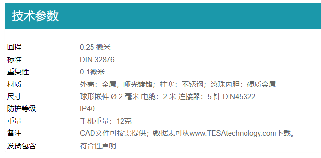 TESA 杠杆测头螺栓行程 0.3 毫米系列